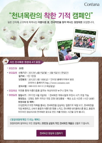 õ³à¸ñ¶õ ¿øÁ¤´ë´Â ÄÚ¸®¾Æ³ªÀÇ Çѹæ ÈÀåǰºê·£µå ÀÚÀÎÀÇ ½ÇÁ¦ ÈÀå¿ø·á°¡ µÇ´Â õ³à¸ñ¶õÀ» Á÷Á¢ º¸°í üÇèÇÒ ¼ö ÀÖÀ¸¸ç, ƯÈ÷ ¿ÃÇØ´Â õ³à¸ñ¶õ üÇèÀº ¹°·ÐÀ̰í õ³à¸ñ¶õ º¹¿ø ÀÏȯÀ¸·Î ¹¦¸ñ½É±â, Âü°¡ºñ ±âºÎ µîÀÇ Çà»ç°¡ ´õÇØÁú ¿¹Á¤ÀÌ´Ù.