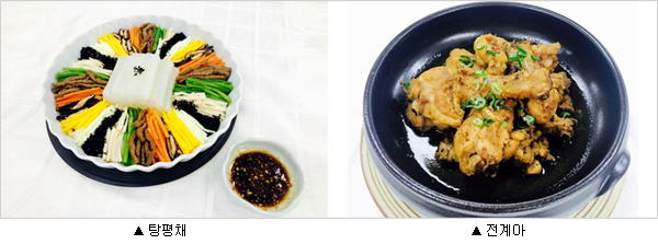 ¨ç ÅÁÆòä = ÅÁÆòä´Â Á¶¼± ¿µÁ¶ ¶§ ¿©·¯ ´çÆÄ°¡ Çù·ÂÇϱâ À§ÇØ ÅÁÆòÃ¥À» ³íÇÏ´Â ÀÚ¸®¿¡ µîÀåÇØ ¡®ÅÁÆò䡯¶ó°í ºÒ¸®±â ½ÃÀÛÇß´Ù. À̸§Ã³·³ ³ìµÎ·Î ¸¸µç ÇϾá ûÆ÷¹¬°ú ¹Ì³ª¸®, ´ç±Ù, ¹ö¼¸ µî »ö»öÀÇ Ã¤¼Ò°¡ Àß ¾î¿ì·¯Á® ¸ÀÀ̳ª ½Ä°¨, »ö°¨ ¸é¿¡¼ ±ÕÇü ÀâÈù À½½ÄÀ̶ó°í ÇÒ ¼ö ÀÖ´Ù.¡¸µ¿±¹¼¼½Ã±â(ÔÔÏÐá¨ãÁÑÀ)¡¹¿¡´Â »ïÁù³¯(À½·Â 3¿ù 3ÀÏ) ¸Ô´Â À½½ÄÀ¸·Î ¼Ò°³µÅ ÀÖÀ¸¸ç ÀÔ¸ÀÀ» µ¸¿ì´Â À½½Ä Áß Çϳª·Î ¾Ë·ÁÁ® ÀÖ´Ù. ûÆ÷¹¬¿¡´Â Çʼö¾Æ¹Ì³ë»êÀÌ Ç³ºÎÇØ ¼ºÀå±â ¾î¸°ÀÌ´Â ¹°·Ð ´ÙÀÌ¾îÆ® ÁßÀÎ »ç¶÷µé¿¡°Ô ÁÁ´Ù. ¨è Àü°è¾Æ = ¡¸¼ö¿îÀâ¹æ¡¹¿¡ ¼Ò°³µÈ ´ßÁ¶¸² À½½ÄÀÌ´Ù. Âü±â¸§À¸·Î ±¸¿î ´ß°í±â¿¡ ÇÑ½Ä °£Àå µîÀ» ³Ö°í Á¶·Á ±íÀº ¸ÀÀÌ ÀÏǰÀÌ´Ù. »ó¿¡ ³»±â Àü¿¡ »ì¦ »Ñ¸®´Â »êÃʰ¡·ç´Â ½Ä¿åÀ» ÀÚ±ØÇÑ´Ù. ´ß°í±â´Â ´Ü¹éÁú ÇÔ·®ÀÌ ³ô°í °í±âÀÇ ¼¶À¯ÁúÀÌ ¿¬ÇØ ¼ÒȰ¡ Àß µÇ±â ¶§¹®¿¡ ³²³à³ë¼Ò ¸ðµÎ°¡ ÁÁ¾ÆÇÏ´Â ½ÄÀç·á´Ù. ÀÚ·áÃâó:³óÃÌÁøÈïû |