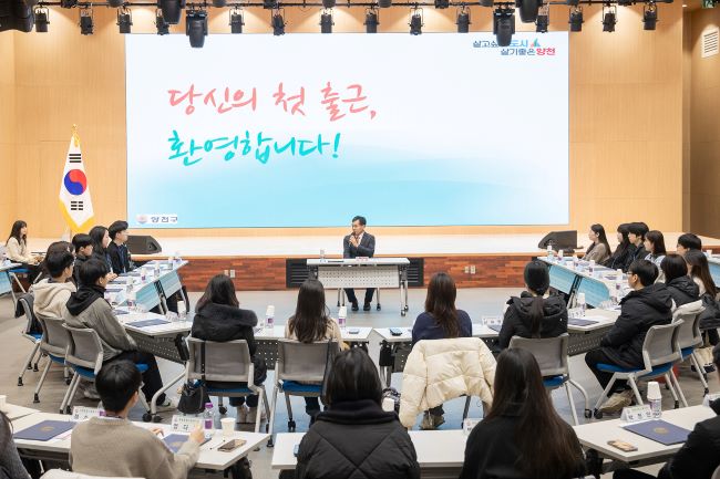 [¿Óóµ¥Àϸ®]¾çõ±¸(±¸Ã»Àå À̱âÀç)´Â 6ÀÏ ¿ÀÀü ¾çõµðÁöÅй̵ð¾î¼¾ÅÍ¿¡¼ 2025 »ó¹Ý±â û³â ÇàÁ¤ÀÎÅÏ 50¸íÀ» ´ë»óÀ¸·Î ¿À¸®¿£Å×À̼ÇÀ» °³ÃÖÇß´Ù. À̳¯ Çà»ç´Â ±Ù¹«¾È³», ÇàÁ¤ÀÎÅÏ ÀÓ¸íÀå ¹× ÀÎÅÏÁõ ¼ö¿©½Ä, ½Ç¹«±³À° ¼øÀ¸·Î ÁøÇàµÆ´Ù. 2025³â »ó¹Ý±â û³â ÇàÁ¤ÀÎÅÏ »ç¾÷Àº 2¿ù 4ÀϱîÁö ¿î¿µµÇ¸ç ¿ÃÇØºÎÅÍ´Â Âü¿©´ë»óÀÌ ±âÁ¸ ´ëÇлý¿¡¼ 19¼¼~29¼¼ ¹ÌÃë¾÷û³â Àüü·Î È®´ëµÆ´Ù. | ±¸´Â û³â ÇàÁ¤ÀÎÅÏÀ» µ¿ Áֹμ¾ÅÍ¿Í µµ¼°ü¿¡¼ ¹Î¿ø ÀÀ´ë¿Í ±â°ü ¾÷¹«¸¦ º¸Á¶ÇÏ´Â ÀÏ¹ÝºÐ¾ß 20¸í°ú º¹Áö‧ÇàÁ¤‧ÇнÀ¸àÅä µî Æ¯ÈºÐ¾ß 30¸íÀ¸·Î ³ª´² ¹èÄ¡Çß´Ù. À̳¯ ¿À¸®¿£Å×À̼ǿ¡ Âü¼®ÇÑ À̱âÀç ¾çõ±¸Ã»ÀåÀº ¡°Ãë¾÷ Áغñ¿Í Áø·Î ¼±Åÿ¡ °í¹ÎÀ» ¾È°í Àִ û³âµéÀ» À§ÇØ ±×°£ ´ëÇлý¿¡°Ô¸¸ ÁÖ¾îÁö´ø ±¸Á¤ üÇèÀÇ ±âȸ¸¦ ¹ÌÃë¾÷û³â ´©±¸³ª Âü¿©ÇÒ ¼ö ÀÖµµ·Ï È®´ë ¿î¿µÇÑ´Ù¡±¸ç ¡°À̹ø û³â ÇàÁ¤ÀÎÅÏ Ã¼ÇèÀÌ Âü¿©ÀÚ¿¡°Ô ¼ÒÁßÇÑ °æÇè°ú ¿ª·®À» ½×´Â ±âȸ°¡ µÇ±æ ¹Ù¶õ´Ù¡±°í ¹àÇû´Ù. |