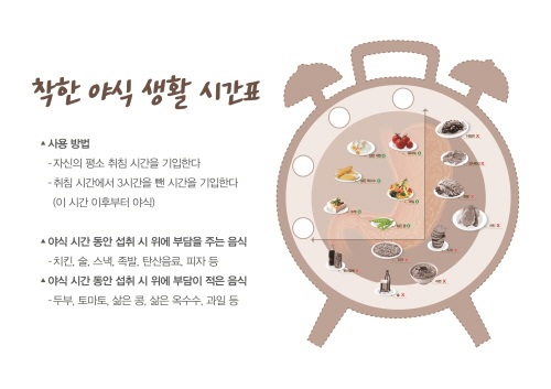 ÀÌ´ë¸ñµ¿º´¿ø À§¡¤´ëÀå¼¾ÅÍ(¼¾ÅÍÀå ±è±¤È£)¿¡¼´Â ÃÖ±Ù À§½Äµµ¿ª·ùÁúȯ ¿¹¹æÀ» À§ÇÑ ¡®ÂøÇÑ ¾ß½Ä »ýȰ ½Ã°£Ç¥¡¯¸¦ ¹ßÇ¥Çß´Ù. ¡®ÂøÇÑ ¾ß½Ä »ýȰ ½Ã°£Ç¥¡¯´Â Æò¼Ò ÀÚ½ÅÀÇ Ãëħ ½Ã°£À» ÅëÇØ °³Àκ° ¾ß½Ä ½Ã°£°ú ¾ß½ÄÀ¸·Î ÇÇÇØ¾ß ÇÒ À½½Ä µîÀ» À̹ÌÁö·Î ¼³¸íÇÏ´Â °ÍÀÌ Æ¯Â¡ÀÌ´Ù.