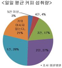 °üÀý¿° ȯÀÚ 10¸í Áß 3¸íÀº ÇÏ·ç 3ÀÜ ÀÌ»ó ¸¶¼Å Ä¿ÇǸ¦ Áñ±â´Â ȯÀÚ 74%(309¸í/419¸í)´Â ¡®ÀνºÅÏÆ® Ä¿ÇÇ¡¯¸¦ ÁÖ·Î ¸¶½Ã°í ÀÖ¾ú°í Ä¿ÇǸ¦ ¸¶½Ã´Â ½Ã±â·Î´Â, ¡®¾ÆÄ§ ½Ä»ç ÈÄ¡¯°¡ 37%(198°Ç)·Î °¡Àå ¸¹¾ÒÀ¸¸ç, ¡®Á¡½É ½Ä»ç ÈÄ¡¯ 22%(117°Ç), ¡®¼ö½Ã·Î ¸¶½Ã°í ½ÍÀ» ¶§¡¯ 15%(81°Ç)°¡ ±× µÚ¸¦ À̾ú´Ù. °á°úÀûÀ¸·Î °üÀý¿° ȯÀÚ 10¸í Áß 6¸í(62%, 260¸í/419¸í)Àº ½ÄÈÄ Ä¿ÇǸ¦ Áñ°Ü ¸¶½Ã´Â °ÍÀ¸·Î ³ªÅ¸³µ´Ù.