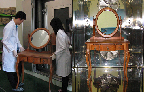 ¸ñÀç ¶Ç´Â ¸ñÁú ¿ø·á¸¦ ÀÌ¿ëÇÏ¿© Á¢ÂøÁ¦ µîÀÇ °áÇÕÁ¦¸¦ »ç¿ëÇÏ¿© °í¿Â¡¤°í¾ÐÀ¸·Î ¼ºÇü¡¤¿¾ÐÇÏ¿© ÆÇ»óÀÇ ÇüÅ·Π°¡°øÇÑ ¸ñÁú ÆÇ»óÁ¦Ç°(MDF, ÆÄƼŬº¸µå(PB) µî)À¸·Î Á¦ÀÛµÈ °¡±¸(3°³)´Â µ¿ÀÏÇÑ ¸ð¾ç°ú Å©±â·Î Á¦ÀÛÇÑ ¿ø¸ñ °¡±¸(3°³)¿¡ ºñÇØ Æû¾Ëµ¥ÇÏÀ̵尡 8¹è Á¤µµ ¸¹ÀÌ ¹æÃâµÇ¾ú´Ù.