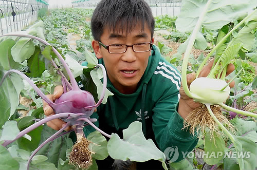 ÃæºÏ À½¼º±º ¼ÒÀÌ¸é ºÀÀü¸® ¼ÛÁ¾±Ù(36)¾¾ÀÇ ½Ã¼³ÇϿ콺¿¡¼´Â ¿äÁò À£ºùä¼Ò·Î °¢±¤¹Þ°í ÀÖ´Â Äݶóºñ(kohlarbi) ¼öÈ®ÀÌ ÇÑâÀÌ´Ù.