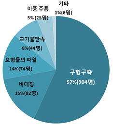 Å©±â ¹× ¸ð¾çÀÇ ºÒ¸¸Á·, ÀÌÁß ÁÖ¸§¡¦ ¼ö¼ú Àü ÃæºÐÇÑ »ó´ãÀ¸·Î ¿¹¹æ °¡´É Á¶»ç ´ë»óÀÇ 28%(151¸í)´Â Å©±â¿¡ ´ëÇÑ ºÒ¸¸Á·, ºñ´ëĪ ¸ð¾ç, ÀÌÁß ÁÖ¸§ µîÀ¸·Î Àç¼ö¼úÀ» ¹Þ¾Ò´Ù. ºñ´ëĪÀº Á¿ìÀÇ °¡½¿ ÇüÅ¿¡ ÀÌ»óÀÌ Àְųª À¼±°ú ¹Ø¼±ÀÌ ´Ù¸¥ °æ¿ìÀ̸ç, ¼ö¼ú°úÁ¤¿¡¼ÀÇ ¹Ì¼÷ÇÔ¿¡ ÀÇÇØ ¹ß»ýÇÏ´Â °æ¿ì°¡ ¸¹´Ù.