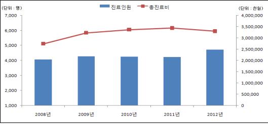 20´ë¹Ì¸¸¿¡¼´Â 1% ¹Ì¸¸À¸·Î °ÅÀÇ ³ªÅ¸³ªÁö ¾ÊÀ¸¸ç, 40´ë¿¡¼ºÎÅÍ ¸¹Àº Áø·áÀοøÀÌ ³ªÅ¸³ª±â ½ÃÀÛÇÑ´Ù. 2012³âÀ» ±âÁØÀ¸·Î 2008³â¿¡ ºñÇØ 30´ë ÀÌÇÏ¿¡¼´Â Áø·áÀοøÀÌ °¨¼ÒÇßÀ¸³ª, 40´ëÀ̻󿡼´Â Áõ°¡ÇÏ¿´´Ù.
