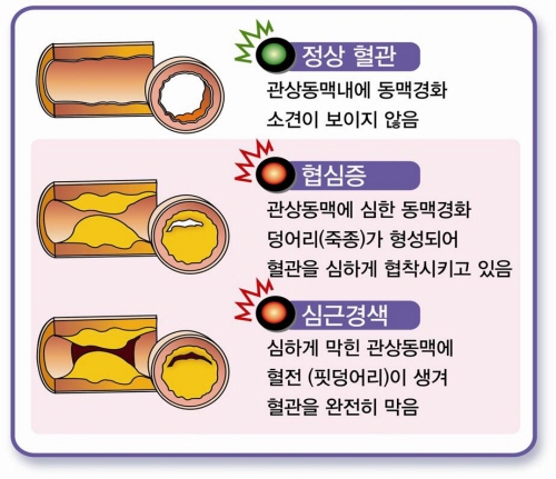½É±Ù°æ»öÁõÀº Á¼¾ÆÁø Ç÷°üÀÌ °©Àڱ⠿ÏÀüÈ÷ ¸·È÷°Ô µÇ¸é¼ Áõ»óÀÌ Áö¼ÓÀûÀ¸·Î ³ªÅ¸³ª´Â °ÍÀ̸ç À̶§ ½ÉÀå±ÙÀ°Àº ±Þ¼Óµµ·Î Á׾°Ô µÈ´Ù. ½É±Ù°æ»öÁõÀº Çö´ëÀÇÇÐÀÌ ¹ß´ÞÇÑ Áö±Ýµµ »ç¸Á·üÀÌ 30%³ª µÇ´Â ¹«¼¿î º´ÀÌ´Ù. ±× Áß Àý¹ÝÀº º´¿ø µµÂø Àü¿¡ ÀÌ¹Ì »ç¸ÁÇÏ°Ô µÇ´Â °ÍÀ¸·Î ¾Ë·ÁÁ® ÀÖ´Ù. °á±¹ ½É±Ù°æ»öÁõ°ú °°Àº ½ÉÀåÁúȯÀº ½Ã°£ÀÌ »ý¸í°ú Á÷°áµÈ´Ù.