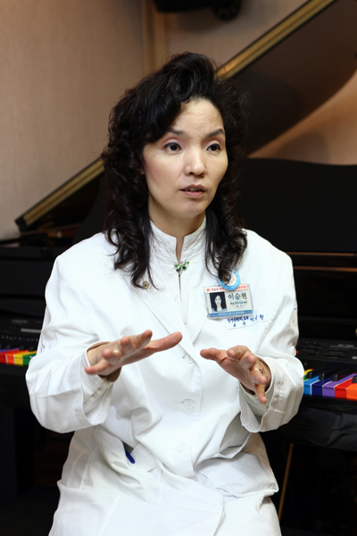 ÀÚÆó¾Æ³ª ¹ß´ÞÀå¾Ö¾Æ¿¡°Ô À½¾ÇÄ¡·á¸¦ ½Ã۴µ¥ Á¤½Å°úÀû ºÎºÐ¿¡¼ ¾î¶² À½¾ÇÀ» µé·ÁÁÖ´Â °ÍÀÏ±î ±Ã±ÝÇß´Ù. ÀÚÆó¾ÆµéÀº ¼ºÇâÀÌ °¢±â ´Ù¸£´Ù. ¼öÇÐÀû °³³äÀÌ ¶Ù¾î³ ¾ÆÀÌ, ¾Æ¹« ¸»µµ ÇÏÁö ¾Ê´Â ¾ÆÀÌ, ¸»ÀÌ ³Ê¹« ¸¹Àº ¾ÆÀÌ, ¸¸µé±â¿¡ Àü³äÇÏ´Â ¾ÆÀÌ µî ¸»ÀÌ´Ù. '±×·¸´Ù¸é, Ä¡·á ½Ã ¾ÆÀ̵éÀÇ ¼ºÇâ¿¡ µû¶ó ´Þ¸® ºÐ·ùÇÑ À½¾ÇÀ¸·Î Ä¡·áÇÏÁö ¾ÊÀ»±î?' »ý°¢ÀÌ µé¾î ¹ßÇ¥ÀÚ¿¡°Ô ¹°¾îº¸ÀÚ, ¡°ºÐ·ù±âÁØÀÌ ¾ø´Ù¡±°í ´ë´äÇß´Ù. ÀÌ»óÇß´Ù.