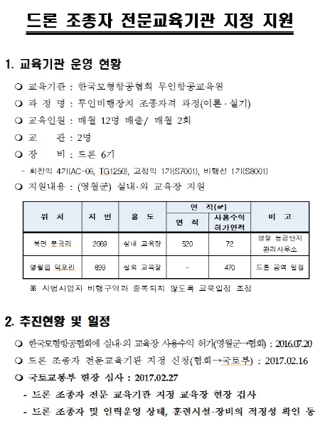 ¿µ¿ù±ºÀº µå·Ð»ç¾÷À» ±ºÀÇ ÇٽɼºÀå»ç¾÷À¸·Î ÃßÁøÇØ ¿ÔÀ¸¸ç, ±¹Åä±³ÅëºÎ¿¡ ¼±Á¤Çϴ¡®µå·Ð Á¶Á¾»ç ¾ç¼º Àü¹®±³À°¿ø¡¯ Àΰ¡ ½Åû ¹× ¡®µå·ÐÀü¿ëºñÇà½ÃÇèÀ塯À¯Ä¡¸¦ ÃßÁøÇØ ¿À°í ÀÖ´Ù.