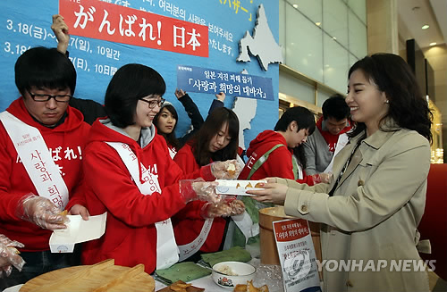 ¡ã20ÀÏ ¼¿ï ¼Ò°øµ¿ ·Ôµ¥¹éÈÁ¡ º»Á¡¿¡¼ Çѱ¹¿Ü±¹¾î´ëÇб³ ¼Ò¼Ó ºÀ»ç´Üü ´ëÇлýµéÀÌ ÃÖ±Ù ÀϺ»¿¡¼ ¹ß»ýÇÑ ´ëÁöÁø ÇÇÇØ¸¦ µ½±â À§ÇÑ '»ç¶û°ú Èñ¸ÁÀÇ ´ë¹ÙÀÚ' Çà»ç¸¦ ¿°í ÀÖ´Ù. À̹ø Çà»ç¿¡¼´Â ¿Ü´ë ºÀ»ç´Üü ÇÑÁßÀÏ ´ëÇлýµéÀÌ ¸ð±ÝȰµ¿¿¡ Âü¿©ÇÑ °í°´µé¿¡°Ô °¨»çÀÇ Àǹ̷ΠÀϺ» ´ëÇ¥À½½ÄÀÎ 'À¯ºÎÃʹä'À» ¹«·á·Î Á¦°øÇß´Ù. |